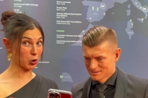 24直播网4月24日讯 克罗斯参加活动,根据小时候的照片认出前队友。