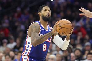 本场比赛,76人前锋保罗·乔治攻防两端拼尽全力,打了41分钟14投7中,三分7中4拿到18分5助攻2抢断,正负值-4。