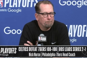 24直播网4月25日讯 NBA季后赛首轮G3,76人100-108不敌凯尔特人,大比分1-2落后,赛后纳斯接受了媒体采访,以下为采访全文。