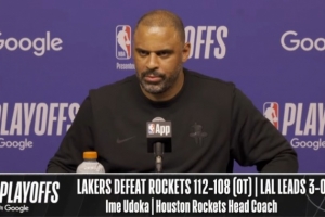 24直播网4月25日讯 NBA季后赛首轮G3,火箭加时108-112不敌湖人,大比分0-3落后,赛后乌度卡接受了媒体采访,以下为采访全文。