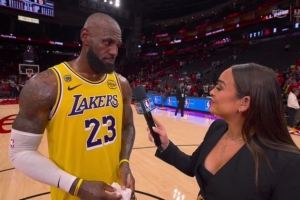 24直播网4月25日讯 今日,湖人经过加时赛112-108客场击败火箭,系列赛大比分3-0领先。赛后,湖人球星詹姆斯接受了采访。
