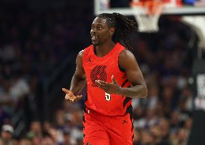 24直播网4月25日讯 NBA季后赛西部首轮G3,开拓者半场65-59领先马刺。