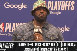 24直播网4月25日讯 NBA季后赛西部首轮G3,湖人加时112-108战胜火箭,大比分3-0领先。赛后詹姆斯接受了媒体采访,以下为采访全文。