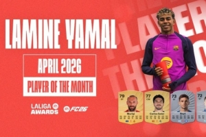 24直播网4月25日讯 西甲官方消息,巴萨边锋亚马尔当选联赛4月最佳球员。自去年11月、12月后,本赛季他第三次获此奖项。