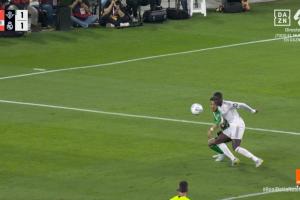 24直播网04月25日讯 西甲第32轮,皇马客场1-1遭贝蒂斯绝平,安东尼在最后时刻断掉门迪的球创造了最终的绝平进球。