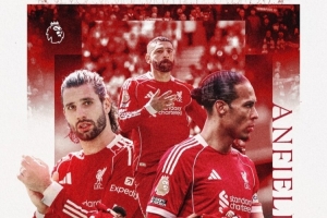 利物浦官方社媒发布了为此役制作的海报,萨拉赫、范戴克、索博斯洛伊出镜,还包含球员们围在一起的场景。