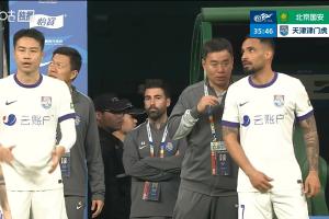 24直播网04月25日讯 中超第8轮,北京国安vs天津津门虎。比赛第36分钟,津门虎同时换两人。王献钧、季胜攀下场,杨帆、谢蒂内登场。此时比分仍为0-0。