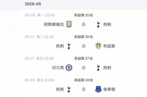 24直播网4月26日讯 在剩余四轮英超赛程中,西汉姆联将先后对阵布伦特福德、阿森纳、纽卡斯尔联和利兹联;热刺将先后对阵阿斯顿维拉、利兹联、切尔西、埃弗顿。