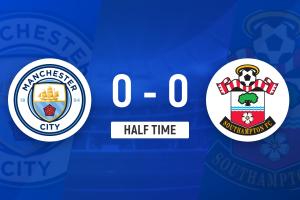上半场伤停补时2分钟,半场结束,曼城暂0-0南安普顿。