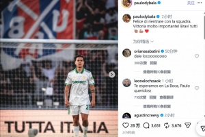 迪巴拉写道:“很高兴能回归球队。非常重要的胜利!大家干得漂亮!👏🏽💪🏽❤️”