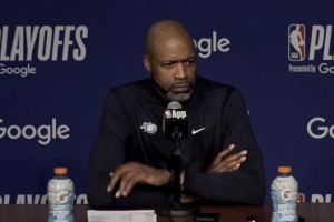 莫斯利:打出高潮有很多原因,这是比赛的一部分。我们打出过高潮,他们也打出过高潮,所以我们必须认识到其中发生了什么。我们获得好的出手机会了吗?我们在进攻端的组织有条理吗?我们有没有防下该防的球?他们投进了一些高难度进球,我们犯了几次规,我认为这就是对手打出高潮的原因。但能够稳住阵脚才是关键,我认为这其中的一部分是,你能不能在那些时刻走上罚球线来止血,恢复冷静,彼此沟通,把我们的战术执行好,把防守布置好。这肯定是一场充满起伏的比赛,我们清楚这意味着什么,我们始终保持冷静的能力将是最重要的。