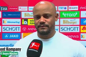 24直播网04月26日讯 昨晚德甲第31轮,拜仁在客场对美因茨完成4-3大逆转,赛后孔帕尼接受了瞬采。