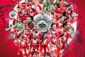 这也意味着拜仁女足在22轮联赛过后积64分,领先第二名狼堡女足15分,成功提前锁定冠军,这也是她们的德甲4连冠。