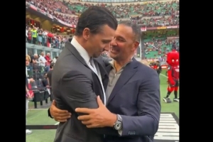24直播网4月27日讯 北京时间今天2点45,意甲第34轮米兰主场对阵尤文。赛前,两名米兰传奇伊布与古利特在场边交流并拥抱。