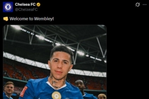 北京时间昨晚进行的足总杯半决赛,切尔西在温布利1-0击败利兹联晋级该项赛事决赛,赛后切尔西在官方社媒晒出恩佐手持全场最佳奖杯的照片,对利兹联予以回应:👊“欢迎来到温布利”
