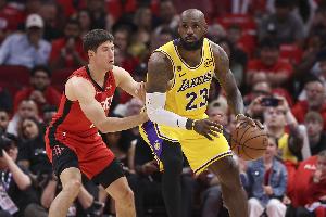 24直播网4月27日讯 NBA季后赛西部首轮G4,火箭半场56-47领先湖人。