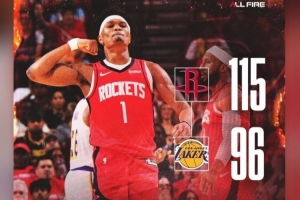 24直播网4月27日讯 NBA季后赛G4,火箭在主场以115-96击败湖人,将系列赛比分扳至1-3。