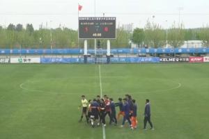 24直播网04月27日讯 中青赛U20联赛,泰山U20队1-2不敌陕西联合U20,上半场比赛结束时,泰山U20主帅崔鹏不满裁判判罚,贴脸怒喷裁判,被红牌罚下。