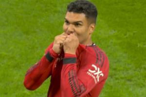 24直播网04月28日讯 曼联vs布伦特福德第11分钟,马奎尔摆渡助攻,卡塞米罗头球破门,亲吻队徽庆祝,此时比分变为曼联1-0!