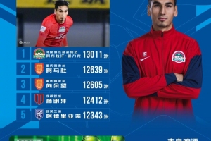 24直播网4月23日讯 中超联赛官方公布了第7轮跑动距离榜,河南队的阿布拉汗位居榜首。