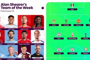 24直播网4月23日讯 阿兰·希勒选出了本轮英超的最佳阵,哈兰德、谢尔基、范戴克、海文和B席入选。
