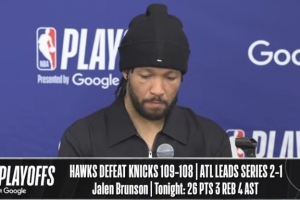 24直播网4月24日讯 尼克斯客场108-109再负老鹰,大比分1-2落后。赛后布伦森接受了媒体采访,以下为采访全文。